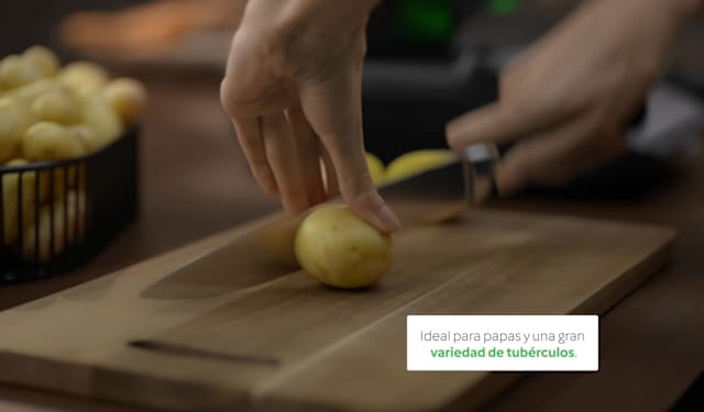 El modo Pelar se debe usar con el accesorio Cubrecuchillas pelador. Después de colocar la tapa sobre las cuchillas, agrega los tubérculos y 600 g de agua, y luego selecciona el modo.