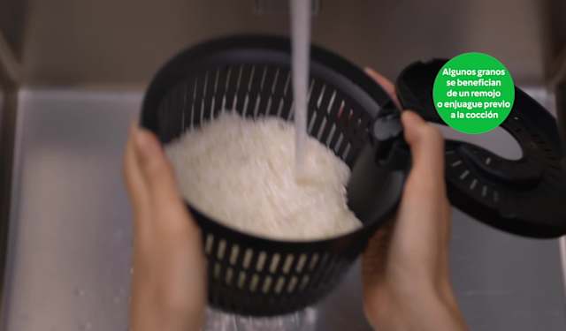 El modo Cocción de arroz cocina el arroz o el grano que prefieras directamente en el vaso para obtener un arroz perfectamente cocido siempre.
