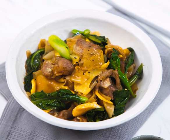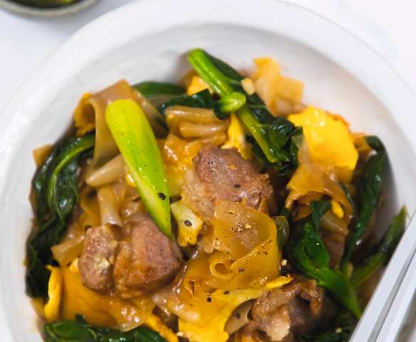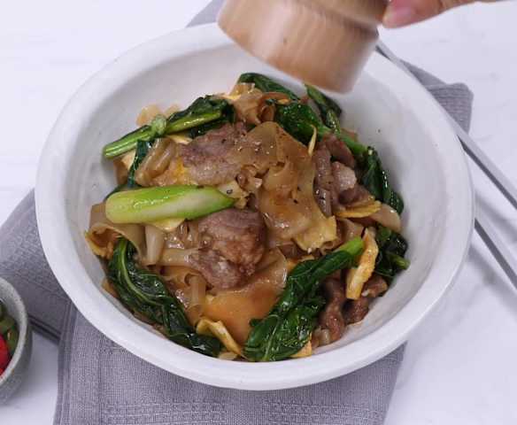 การเตรียมไข่และก๋วยเตี๋ยวเส้นใหญ่