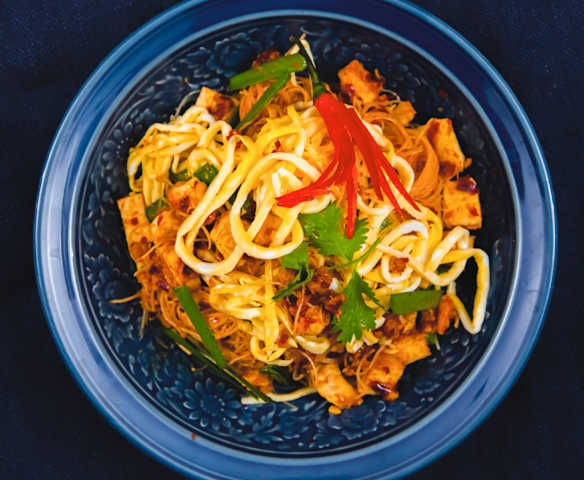 น้ำ (ปริมาณเพียงพอที่จะใช้แช่เส้นหมี่)
